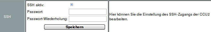 der Einstellung der HomeMatic CCU2 konnte der SSH-Zugang