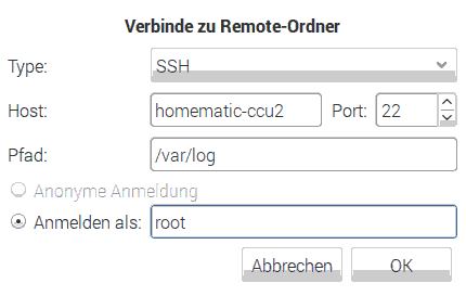 'Host' kann man auch die IP-Adresse der HomeMatic eintragen